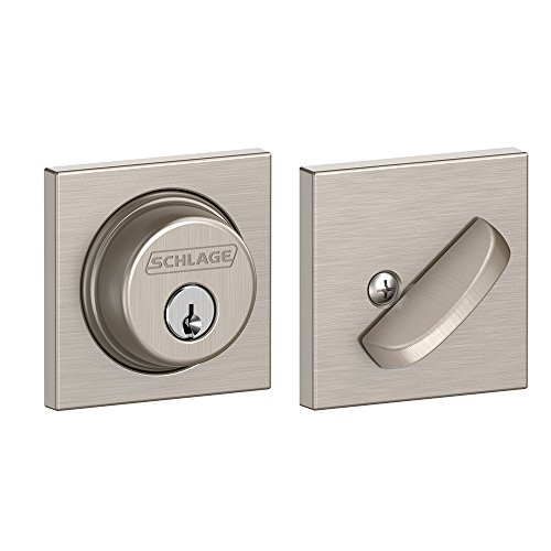 The Schlage satin nickel single cylinder deadbolt with Collins trim is perfect for use on exterior doors and adds an extra layer of security to your exterior handle set or knob/lever. The Collins trim's strong lines and square shape add a distinct, minimalist appeal. When finished in satin nickel, the deadbolt offers a tasteful and flattering accent to any home. Plus, it's been designed and tested with strength and durability in mind.
