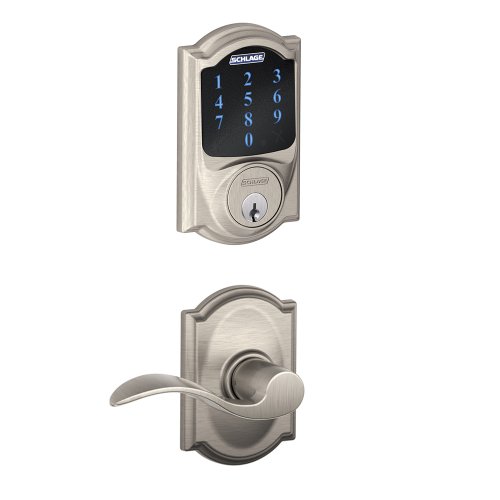 mode : Schlage Connect Camelot Touchscreen Deadbolt with Built-In Alarm and Accent Passage Lever , Satin Nickel, FBE469NX ACC 619 CAM