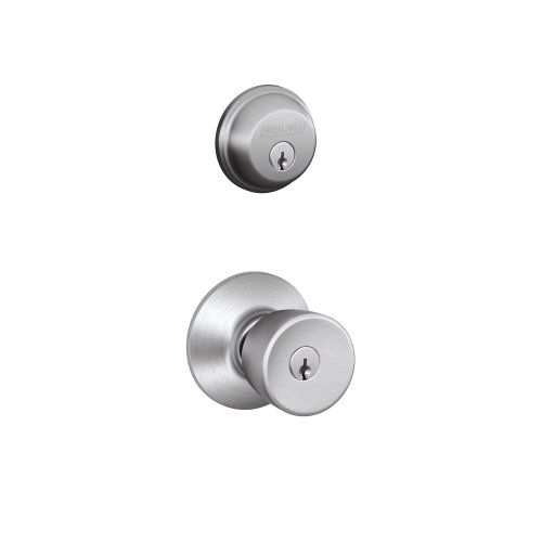 Schlage FB50N V BEL 626 B60 Single Cylinder Deadbolt and F51 Keyed Entry Bell Knob Keyed Alike, Satin Chrome finish Reviews